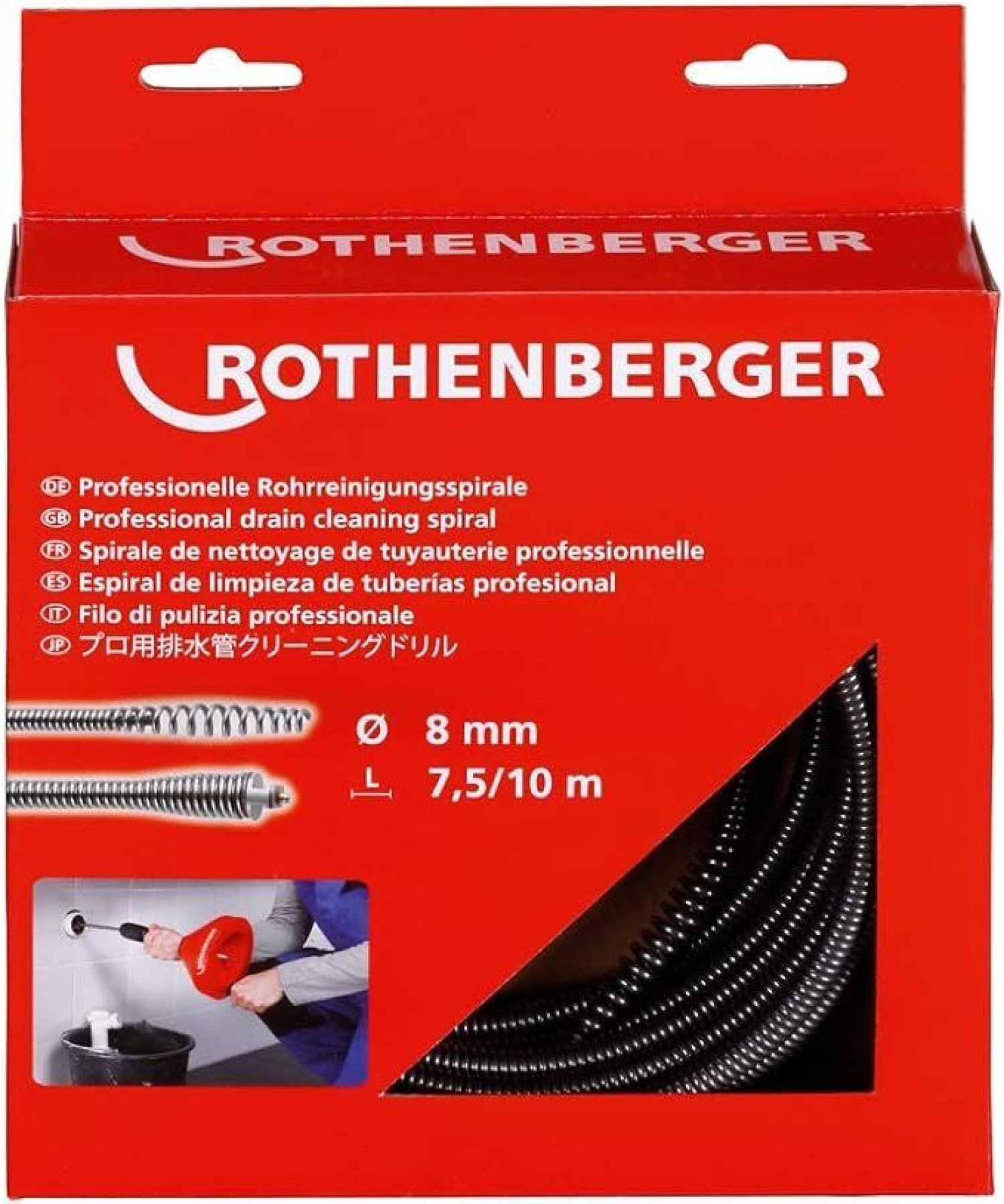 - Adecuadas para ROSPI H + E Plus, ROSPI 36 Plus, ROSPIMATIC y con adaptador R 550, R 600, R 650 Fácil de usar, incluso en curvas cerradas, especialmente con espirales de 8 mm, también directamente mediante colectores de sumidero, sin tener que desmontar el sumidero o el sifón guardaolores