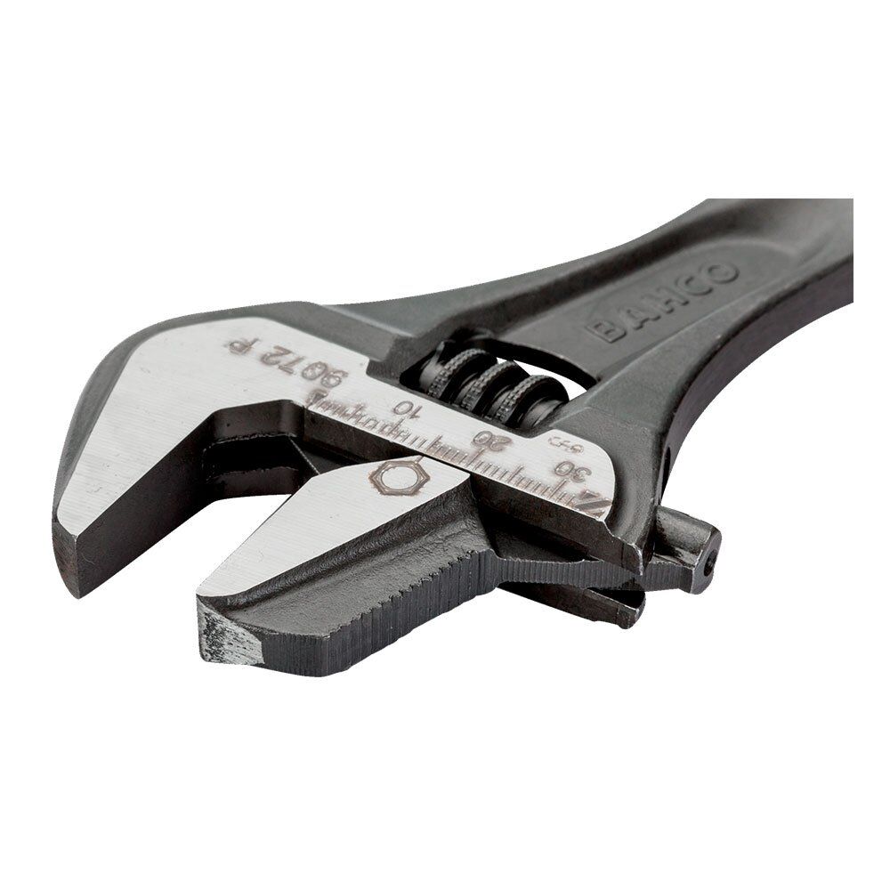 - Con la mordaza móvil en la posición normal, es apta para tuercas y pernos de hasta 34 mm.