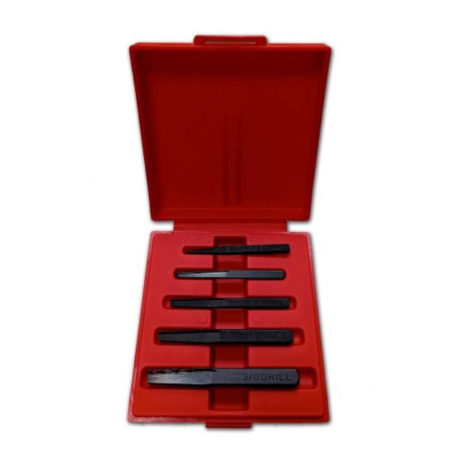 - Cada extractor cuenta con una punta fresada, lo que facilita el clavado en el espárrago o tornillo dañado, garantizando una extracción efectiva y sin esfuerzo.