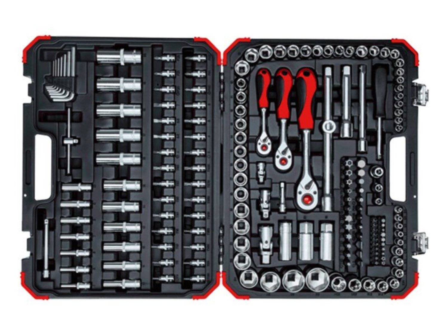 - Para que nada se pierda y todas las herramientas estén siempre al alcance y organizadas de forma práctica, cada juego de vasos de GEDORE red viene en un robusto maletín de plástico con cierres metálicos.