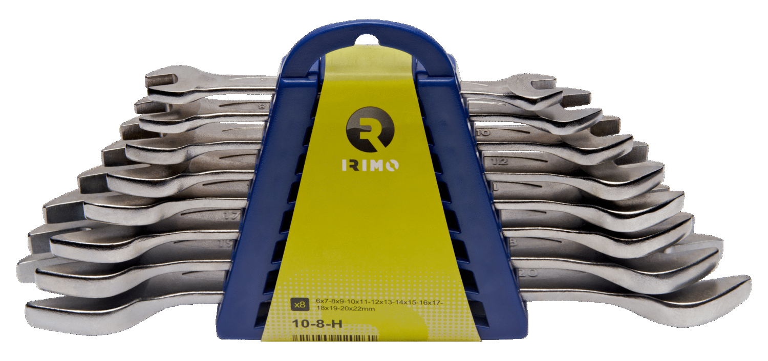 Juego de llaves fijas de dos bocas, con soporte, 8 piezas 10-8-H Irimo